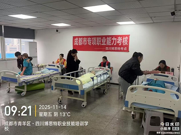 2025年11月14-15日,四川博思特职业技能培训学校(荣德大厦考点),举行了“小儿推拿”、“中医康复理疗”、“病患陪护”、“母婴生活护理”、“产后康复服务”等专项职业能力考试。